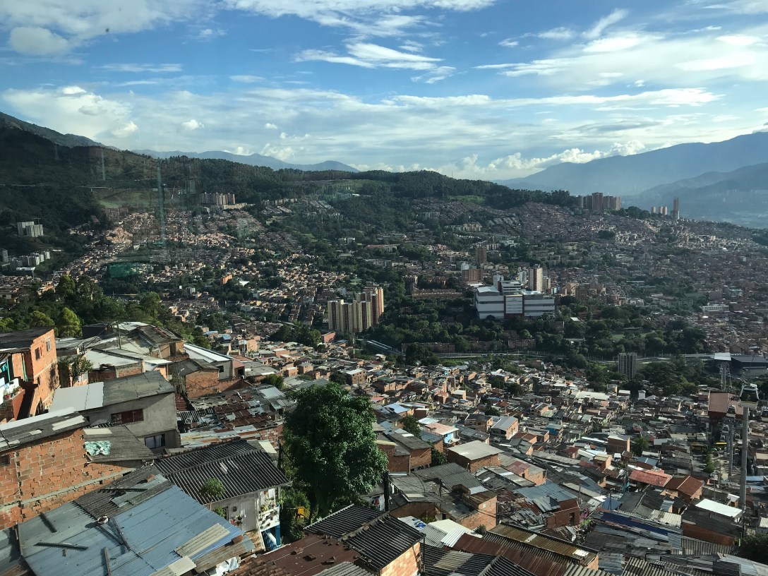 Riding into the city of Medellin was not something we looked forward to but luck was with us. Other riders we met en route insisted we not bother with the ‘ciclovia’ and just stay on the highway. The 4 lane highway turned into a 6 lane ‘autopista’ with no shoulder but somehow we managed to hang with a bunch of other riders as they just took over one of the lanes as we rocketed into downtown Medellin on a descending grade. We had only a vague idea of where we were so when the group of cyclists in front of us exited we followed, relieved to be off this madcap trajectory. In short order the exit ramp led us to a road that they close every Sunday to vehicles offering a pleasant, stress free cruise to within a short pedal, on busy city streets, to our AirBnB.