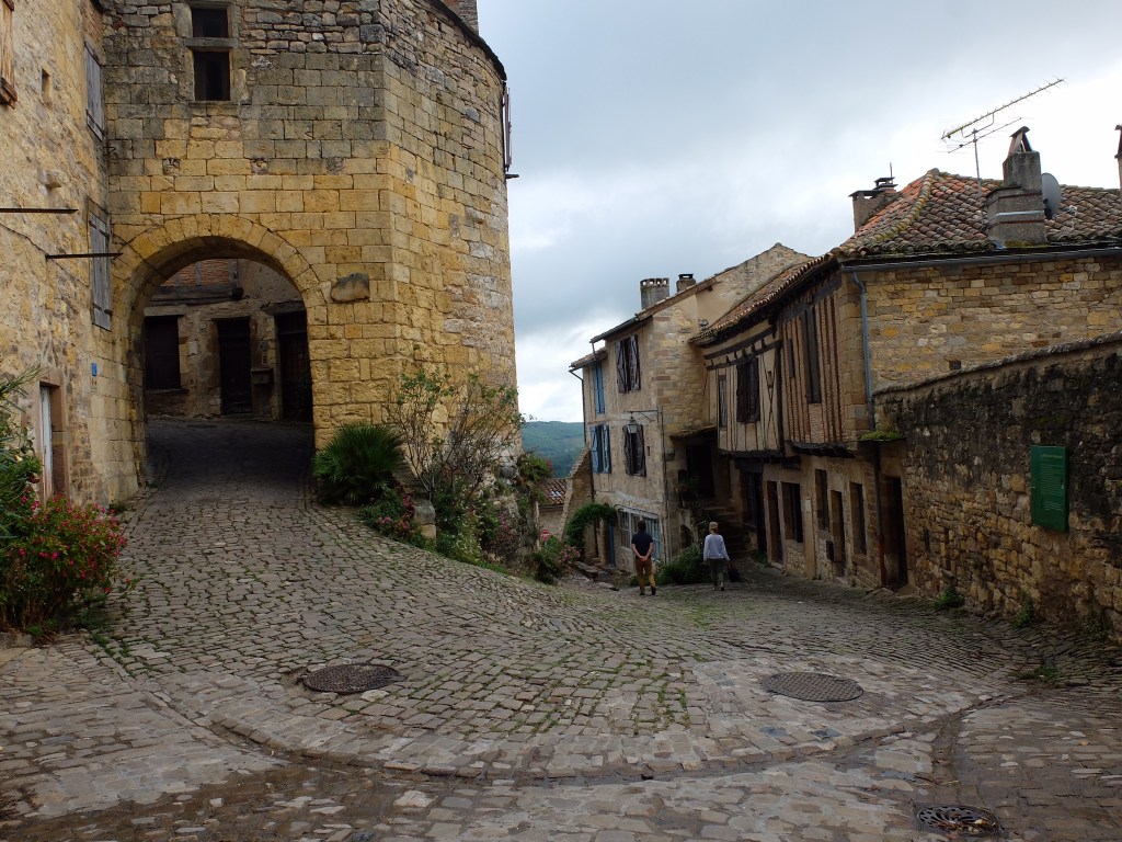 (Left) The medieval Cordes-sur-Ciel. (Right) Ancient homes and streets, with one of the gates through a defensive wall.