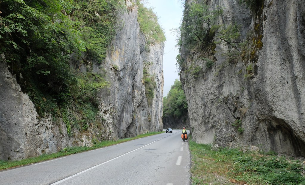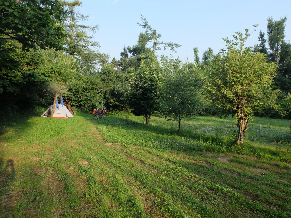 Our first night in Slovenia was quite special. I’m always trying to convince Claire to wild camp but she is not yet comfortable with the idea. In Canada yes, but a strange country is quite another thing. Moreover, they say that in much of densely populated Europe, wild camping is frowned upon. Whatever, I’m Canadian! We had scoped out on Google a possible site beside a river near the town of Postojne. As we rode down a lonely, seldom used dirt road toward the river a car crept up behind us. We came to a fork in the road. The car turned left, parked and out came this small, older man with a questioning look on his face. I mimed, with a hopeful expression, that we were looking for a place to camp. After a moment’s hesitation, he indicated to follow him to “my garden”, the only words he spoke. He drove off on the grassy lane under a tight bower of trees creating a dense, dark tunnel. As we followed on our bikes, I was thinking to myself, ‘what an awesome place’. Unbeknownst to me, Claire is thinking, ‘the guy is an axe murderer’! The canopy of trees opened up to a lovingly tended fruit and vegetable garden with a meadow at the far end. Once again, our host of few words beckoned for me to follow and he led me down a short path to a small, spring fed pool for us to bath in. Very cool! Claire is still not convinced about the wild camping thing but we’re working on it.
