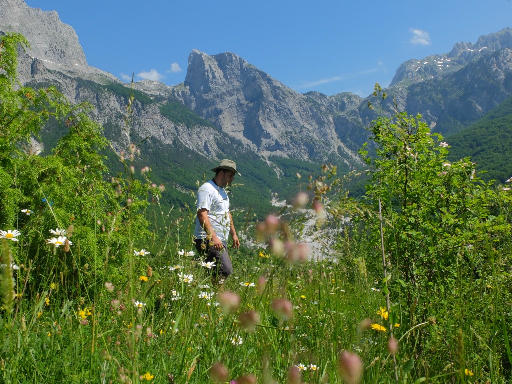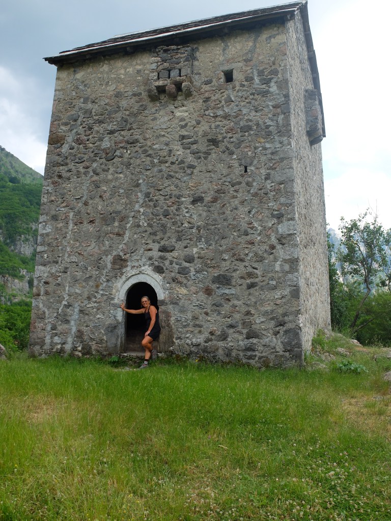 The 3.5 hour trip into Theth was quite something. After a long climb of tight switchbacks, the good, recently-asphalted, road abruptly stopped at the top of a 1600 M pass. We then began the interminably long descent down a very rough, single lane gravel road with precipitous, unprotected drops to our right (not for the faint of heart) into this spectacular valley surrounded by dramatic limestone peaks. We spent the night at our guides family home (12th generation in the valley) with all our meals, organic and traditional, prepared and served by his parents. It was simple but nourishing fare served ‘en plein air’. Both days we went on long hikes. The first day we visited the village proper. It was interesting, all very rustic but still a bit of a let down, with widely dispersed housing and a mish-mash of small tourism businesses dotted about. As we had seen in much of Albania, there was no evidence of planning, little government control and, in our opinion, little understanding of their potential tourism market. The highlight of the walk was coming upon the infamous ‘kulla’, a small fortress like structure where families would retreat to when ‘in blood’, i.e., were caught up in the lethal possibility of a revenge killing, a ‘blood feud’ that is apparently still commonplace in the highlands and explains the high rate of homicide. This phenomenon, all a bit hard to grasp, was totally out of keeping with the people we met. Our second day was spent hiking to a high mountain pass with 3 of the keener students (our rather, out of shape guide bailed half way up).