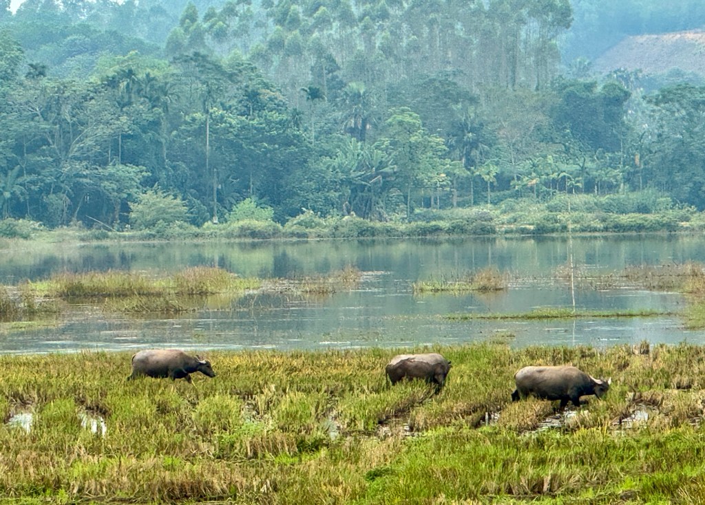 Our first three days riding out of Hanoi were both easy and illuminating. We followed the broad, flat valley of the Red River (Song Hong) towards the northwest, and the town of Yen Bai, at which point we turned west and headed up into the mountains. Those three days showed us how densely populated the country is, how verdant the landscape and how intensively farmed it is, and finally, how fervently capitalist this ‘communist’ country is. The riding was easy enough, despite the heat, and the drivers courteous, in a Vietnamese-sort-of-way, always honking as they approach from behind, but in a country thar sees way too many road-related fatalities, we’ve got to stay focused.
