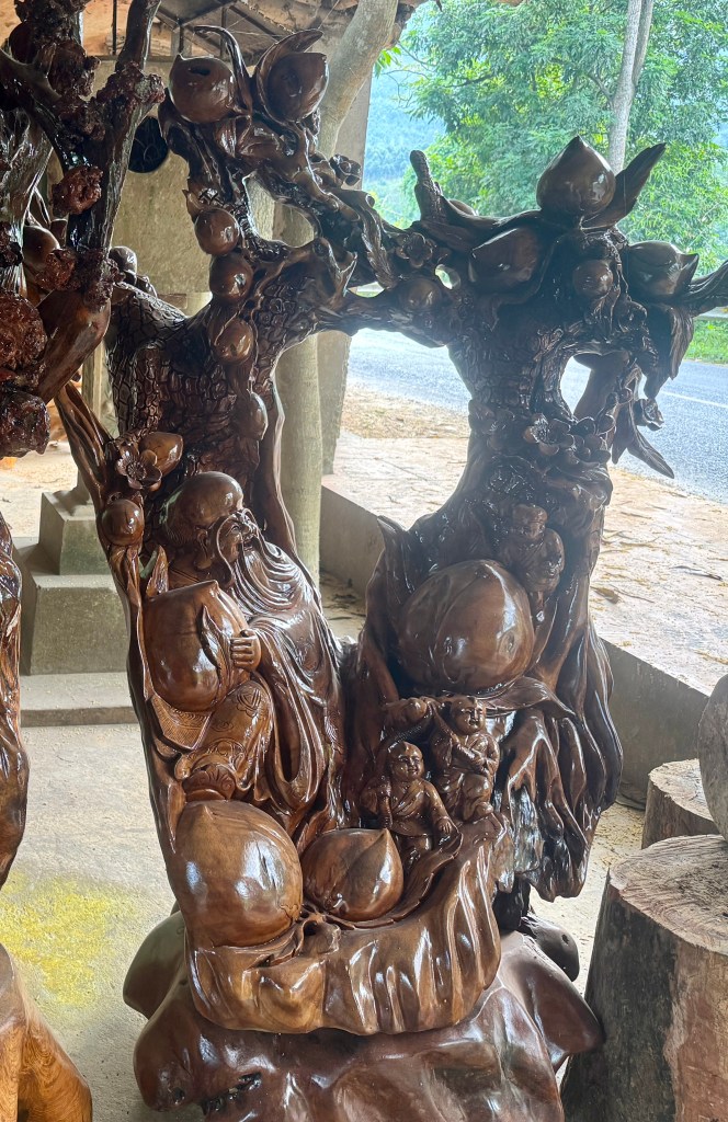 After the cinnamon, it was wood carving. Using basic tools, a variety of woods, infinite patience, skill and amazing things happen. At the top, left is the sitting room of our $16. per night hotel room. These beautifully carved seating arrangements (or similar )were to be found everywhere, even in quite modest homes. Quite frankly, they were bloody uncomfortable and heavy as sin but they were showy and clearly, the must-have furnishings. The polar opposite of IKEA. On the right is an example of the most outrageously, impractical but exquisitely carved chair fit for a king. Who would buy this unwieldy thing? What fraction of the population could afford it? At the bottom is a (poor) photo/example of how they work hardwood tree rootballs into, in this case, a fantastic bas-relief carving.