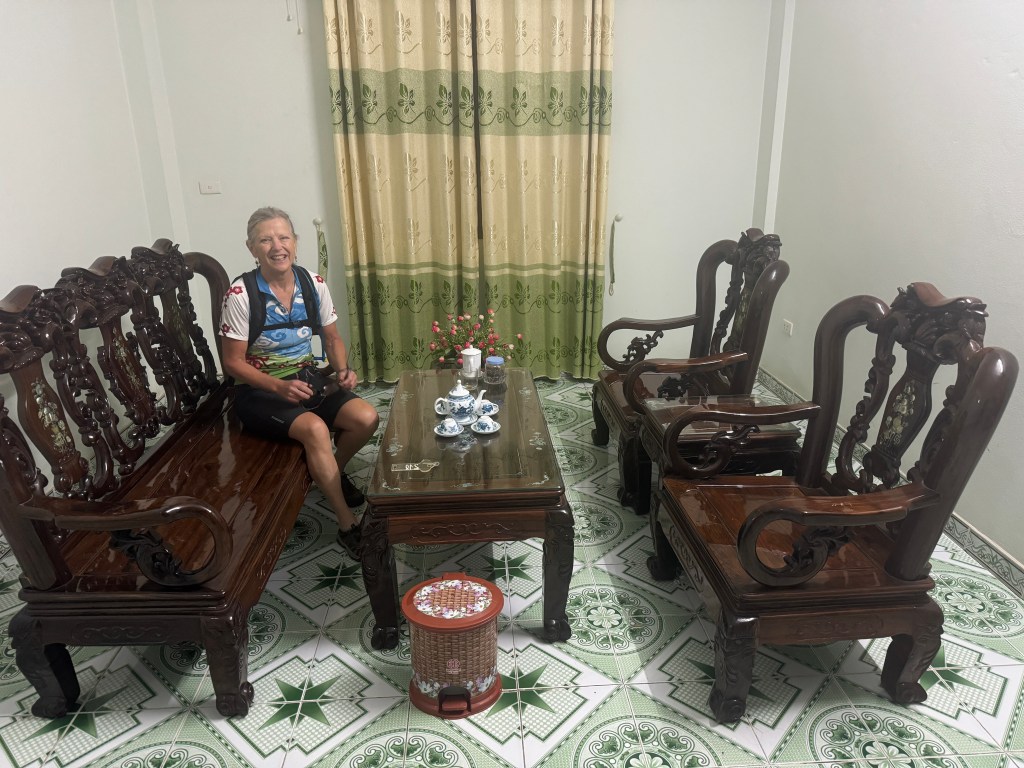 The greatest virtue of bike touring is the contact with people. We can easily stop at whatever interests us. We’re approachable and to many, intriguing. They often ask our age. The school kids will yell out “Hello, how are you? What is your name?”, and that’s it . Communication is our constant challenge. Outside of Hanoi, English disappears. Google Translate is a powerful tool but with limitations. A hotel concierge kept asking to see our ´pizza’ – she meant ‘passport’. We all had a good chuckle but the language barriers can be tiring/frustrating for all involved. As we passed through two small towns, within 24 hours, we were invited into two different weddings. What scenes! Four to five hundred people, apparently just friends, neighbours and family, all packed into makeshift halls. The ladies dressed to the nines. Tables laden with country food, most of which a mystery to us. Constant toasts, followed by handshakes and a steady stream of people wanting to meet/talk to us. In an ambiance of shouted conversation with overwhelming karaoke on top, it was all a bit much and we would, as delicately as possible, excuse ourselves after we’d eaten (how gauche!) and get back on our bikes.