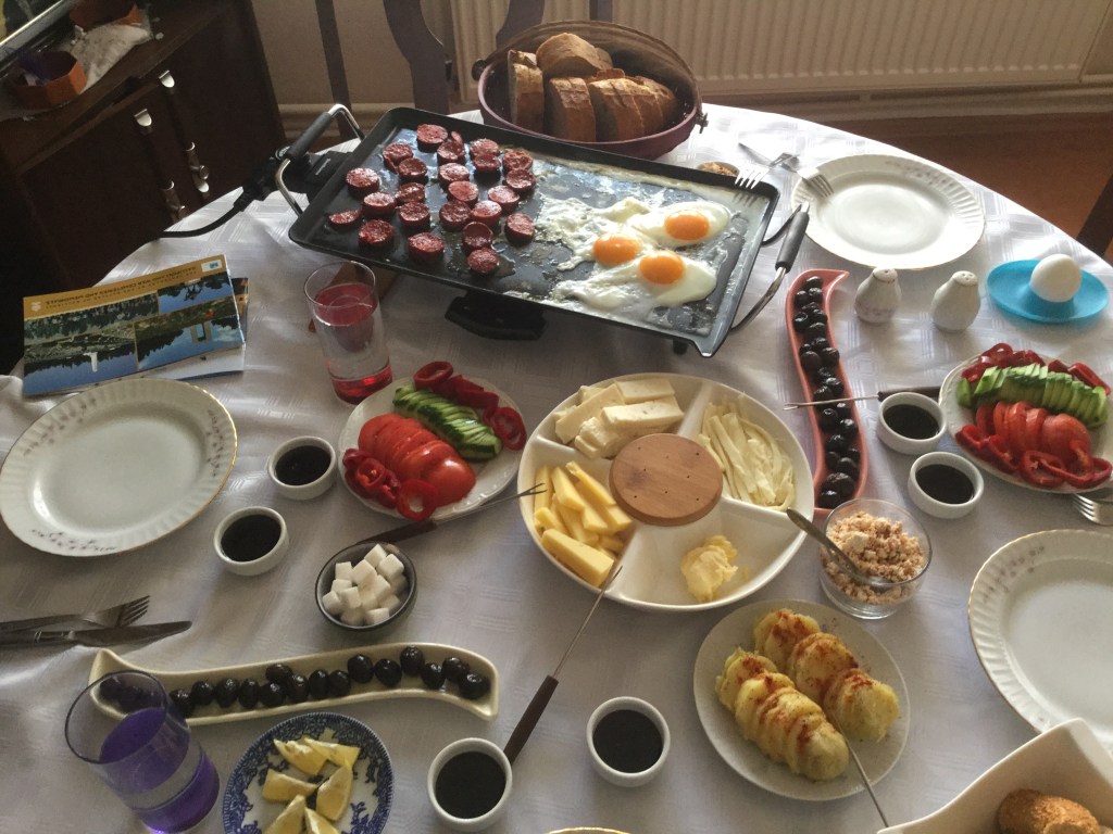 (Left) Aysen and mom, charming hosts. (Right) Breakfast at their home, Turkish hospitality at its best.