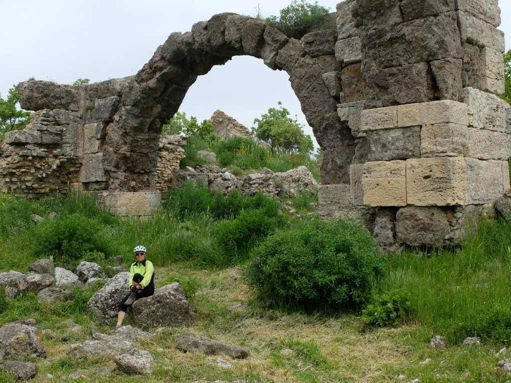 It’s now our 7th day on the road – a rest day. We’ve been wet and cold, in dangerous side winds that had us walking our bikes, pushed our bikes up a 3 km dirt hill (bloody Google!)and on rocky cobblestone roads that have us worried for our bikes durability. We visited the ancient cities of Troy (subject of the Iliad), Alexandria Troas, Appolon Smintheion (temple to Athena) and Assos (Aristotle lived there). We’ve slept in modest hotels ($32/night), in derelict campgrounds ($0) and had our first http://www.warmshowers.com stay (Couch Surfing for bikers) with Aysen and her mother in Cannakale (filled with Aussies visiting on Anzac Day commemorating the 100th anniversary of the Battle of Galipoli). We can’t say enough about how well we were received by Aysen. My efforts at being a Warm Showers host last summer absolutely pale in comparison. The Turks have been universally gracious, patient and helpful despite our pathetic attempts at speaking Turkish. The language has us baffled. We repeat the name of the upcoming village a few times and promptly can’t remember it two kilometres down the road…I guess it is an age thing! We leave Kucukkuyu for Ayvalik (see what I mean) in the morning. ‘Thank you’ ( two syllables) is ‘teshekkur ederim’ (six syllables) and so on…..